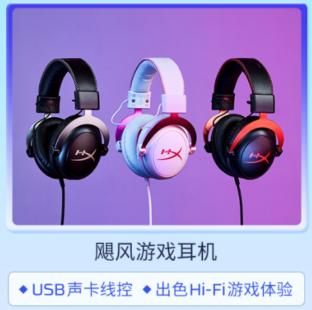 HyperX飓风游戏耳机属于HyperX游戏耳机中的爆款产品,凭借出色的音质、舒适的设计、虚拟7.1环绕声功能、USB声卡线控以及多平台兼容性赢得了众多玩家的认可。53mm高品质大尺寸驱动单元可以带来声场宏大、层次丰富且感染力十足的效果,清晰而准确的呈现游戏世界的各种音频细节。并且,这款游戏耳机还有黑红色、青铜色、霓虹粉三种配色供玩家选择。此外,参加618活动的还有无线版本的HyperX飓风无线版游戏耳机,这款耳机采用2.4GHz低延迟无线连接技术,并提供30小时的长效续航以及DTS Headphone:X空间音频技术。