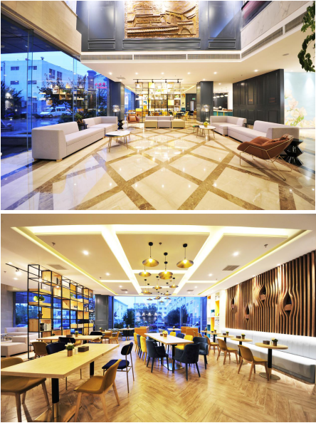 区别于传统酒店大堂,白玉兰酒店大堂以灵动空间呈现,涵盖特色水吧、餐饮、书吧、茶吧、会议等多种功能。在这里,可以享用咖啡下午茶,可以社交、可以办公,可以举办多种形式的文创活动,是融合了人文艺术、轻社交、健康餐饮以及生活美学的多功能"城市会客厅",带给客人更多"精致时尚生活"的旅居体验。